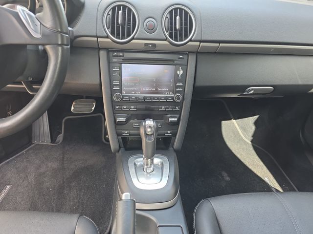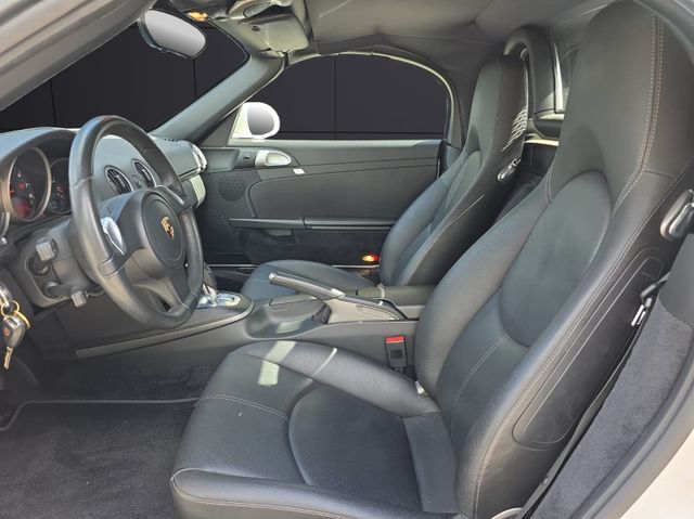 Sonderausstattung - Ablagebox hinten , Alarmanlage , Innenraumüberwachung (Infrarot - System) , Bi-Xenon-Scheinwerfer mit dynamischem Kurvenlicht , Tagfahrlicht LED , Scheinwerfer-Reinigungsanlage (SRA) , Fahrassistenz-System: Park-Assistent , Fußmatten , Klimaautomatik , Lenkrad (Sport/Glattleder, 3-Speichen) , LM-Felgen vorn/hinten: 8x18 / 9x18 (Boxster S II Rad) , Porsche Communications Management (PCM) inkl. DVD - Navigationsmodul (erweitert) , Reifendruck-Kontrollsystem , Sitzbezug / Polsterung: Teilleder , Sitze, vollelektrisch , Sitzheizung vorn , Sound-Package Plus , Telefonmodul für Porsche Communications Management (PCM) , Vorrüstung Vehicle-Tracking-System , Windschott - - Serienausstattung - 3. Bremsleuchte , Airbag Fahrer-/Beifahrerseite , Anti-Blockier-System (ABS) , Antischlupfregelung (ASR) , Antriebsart: Heckantrieb , Anzeigeinstrumente mit Hintergrund schwarz , Außenspiegel elektr. verstell- und heizbar, beide , Bremssättel schwarz eloxiert , Diebstahlsicherung für Räder (Felgenschlösser) , Drehzahlmesser , Fensterheber elektrisch , Getriebe 7-Gang - Doppelkupplungsgetriebe (PDK) , Heckscheibe heizbar , Innenraumfilter: Aktivkohlefilter (Geruchsfilter) , Isofix-Aufnahmen für Kindersitz an Beifahrersitz , Karosserie: 2-türig , Koffer- und Motordeckelentriegelung elektrisch , Kopf-Airbag-System Porsche Side Impact Protection System (POSIP) , Lenksäule (Lenkrad) verstellbar , Modellpflege , Motor 2,9 Ltr. - 188 kW KAT , Multifunktionsanzeige / Bordcomputer , Nebelscheinwerfer , Nebelschlussleuchte , Porsche Stability Management (PSM) , Reifen-Reparaturkit , Seitenairbag vorn , Servolenkung , Verdeckbetätigung elektrisch , Verglasung getönt , Wegfahrsperre , Zentralverriegelung mit Funkfernbedienung - - Weitere Ausstattung - SERIENFAHRWERK , EU-LAENDERAUSFUEHRUNG , ABGASKONZEPT EU 5 , AKUSTIKPAKET RDW , STANDARD KLIMAZONEN , STAERKERER ANLASSER (1,7 KW) , BATTERIETRENNSCHALTER , KENNZEICHENHALTER AUSF. III , AUSGLEICHSGETRIEBE , BRIDGEST N1/ CONTI N1 / MICHELIN N4 , AUSSENSPIEGEL, ASPH. GLAS FAHRERS. , SCAN ANTENNEN-DIVERSITY , SCHILDER IN DEUTSCHER BESCHRIFTUNG , DEUTSCHLAND-AUSFUEHRUNG , NEIGUNGSGEBER , WEGFAHRSICHERUNG, ZV, 433 MHZ , STAHL-TUEREN , SOFTWARE NAVIGATION , 12V STECKDOSE (BF-FUSSRAUM) , 9X7 FL(STEUERUNGS-MNR. F. ABT. PME) , STEUERUNG ABTEILUNG PMA , LACK WERK 2 , KLANGPAKET ASK , SITZPOS.-STEUERUNG LI. (MEMORY) , LED-TAGFAHRLICHT , BIXENON + DYNAMISCHES KURVENLICHT , NEBELSCHLUSSLEUCHTE LINKS , AKTIVKOHLEFILTER (INNENRAUM) , SCHEINWERFER-REINIGUNGSANLAGE , WINDSCHUTZSCHEIBE OHNE BANDFILTER , CD-ABLAGE , PCM 3 - TELEFON (GSM) , PCM 3 - GRUNDMODUL (INCL. RADIO) , PCM 3 - ERW. NAVIGATION (OFFROAD) , UNIVERS. MULTIMEDIA-SCHNITTSTELLE , ZIFFERNBLAETTER KOMBI SCHWARZ , BORDCOMPUTER , PARKASSISTENT HINTEN , REIFENDRUCKKONTROLLE RDK 433 MHZ , FUSSMATTEN , KLIMAANLAGE ELEKTRONISCH (HIGH) , REGELB. SITZHEIZUNG VORNE (LI + RE) , SITZBEZUEGE VO. LLK (TEILL. GEPR.) , LINKSLENKER-AUSFUEHRUNG , KOMFORTSITZ LINKS ELEKTR.VERSTELLB. , KOMFORTSITZ RECHTS ELEKTR.VERSTELLB , SICHERHEITSGURTE IN SCHWARZ , DIEBSTAHLSICHERUNG / ALARMANLAGE , VORRUESTUNG VEHICLE TRACKING SYSTEM , WINDSCHOTT , ABLAGEBOX (AUF MOTORDECKEL) , RAD BOXSTER S II 18 , BASISLENKRAD GLATTLEDER , PORSCHE STABILITY MANAGEMENT (PSM) , BATTERIE 80 AH , PDK-GETRIEBE (DOPPELKUPPLUNG) - - Farben & Interieur - Lackfarbe: Carraraweiß , Innenausstattung: SCHWARZ LLK - - Bauart: Cabriolet - Motor 2,9 Ltr. - 188 kW KAT - Karosserie: 2-türig - Getriebe 7-Gang - Doppelkupplungsgetriebe (PDK) - Anzahl Achsen: 2