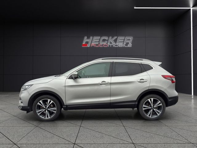 Sonderausstattung - Design-Paket I , Dachreling silber , Panorama-Glasdach , Metallic-Lackierung , Reserverad als Notrad , Sitzbezug / Polsterung: Teilleder , Sitz vorn links elektr. verstellbar , Winter-Paket , Frontscheibe heizbar , Sitzheizung vorn - - Serienausstattung - 3. Bremsleuchte , 6 Lautsprecher , Airbag Beifahrerseite abschaltbar , Airbag Fahrer-/Beifahrerseite und Seitenairbag vorn , Ambiente-Beleuchtung , Anti-Blockier-System (ABS) , Antriebsart: Frontantrieb , Audiobedienung am Lenkrad , Audiosystem: Radio mit CD- und MP3-Player , Touchscreen-Farbdisplay (7,0 Zoll) in Mittelkonsole , Ausstattungs-Paket: Nissan Connect , Navigationssystem , Kamerasystem Around View , Auto-Hold-Funktion , Automatische Fahrlichtschaltung , AUX-IN-Anschluss (AUX-IN) , Außenspiegel elektr. anklappbar , Außenspiegel elektr. verstell- und heizbar , Außenspiegel Wagenfarbe , Außentemperaturanzeige , Blinkleuchte in Außenspiegel integriert , Bluetooth-Schnittstelle , Bordcomputer , Bremsassistent (Nissan Brake-Assist) , Coming-Home-Lichtfunktion (Friendly Lightning) , Elektr. Bremskraftverteilung (EBD) , Elektron. Stabilitäts-Programm (ESP) , Fahrassistenz-Paket Visia , Fahrassistenz-System: Verkehrszeichenerkennung , Einparkhilfe vorn , Einparkhilfe hinten , Innenspiegel mit Abblendautomatik , Fahrassistenz-System: Autonomer Notbrems-Assistent , Fahrassistenz-System: Fußgängererkennung , Fahrassistenz-System: Spurhalteassistent , Fahrassistenz-System: Aktive Fahrkomfortregelung (Fahrwerksdämpfung) , Fahrassistenz-System: Aktive Motorbremse , Fahrassistenz-System: Berganfahr-Assistent , Fahrassistenz-System: Fernlichtassistent , Fahrassistenz-System: Geschwindigkeits-Warnanlage akustisch (Speed-Limiter) , Fahrassistenz-System: Kurvenbremskontrolle (Aktive Spurkontrolle) , Fahrer-Informations-System (FIS) mit Farbdisplay , Fensterheber elektrisch vorn + hinten , Fernentriegelung Tankklappe , Freisprechanlage Bluetooth , Frontscheibe Verbundglas , Gepäck-/Laderaum-Unterteilung (Flexi-Board) , Gepäckraumabdeckung / Rollo , Geschwindigkeits-Regelanlage (Tempomat) , Getriebe 7-Gang - Doppelkupplungsgetriebe DCT , Getränkehalter in Mittelkonsole , Gurtstraffer , Handschuhfach beleuchtet , Heckscheibe heizbar , Innenraumfilter: Pollenfilter , Isofix-Aufnahmen für Kindersitz , Karosserie: 5-türig , Klimaautomatik 2-Zonen , Kopf-Airbag-System , Kopfstützen vorn und hinten verstellbar , Lendenwirbelstütze Sitz vorn links , Lenkrad (Leder) , Lenkrad mit Multifunktion , Lenksäule (Lenkrad) höhen-/längsverstellbar , Leseleuchte vorn , LM-Felgen , Mittelarmlehne hinten , Getränkehalter hinten , Mittelarmlehne vorn , Modellpflege , Motor 1,3 Ltr. - 117 kW 16V KAT , Nebelscheinwerfer , Nebelschlussleuchte , Parkbremse elektrisch , Radioempfang digital (DAB) , Radstand 2646 mm , Reifendruck-Kontrollsystem , Rückfahrkamera , Rücksitz geteilt/klappbar , Schadstoffarm nach Abgasnorm Euro 6d-TEMP , Schalt-/Wählhebelgriff Leder , Schaltpunktanzeige , Scheibenwischer mit Intervallschaltung , Scheibenwischer mit Regensensor , Schließ-/Startsystem intelligent key , Servolenkung , Sitz vorn links höhenverstellbar , Sitz vorn rechts höhenverstellbar , Sonnenblenden mit Spiegel , Sprachbediensystem Spracherkennung , Start-Stop-Knopf , Start/Stop-Anlage , Steckdose (12V-Anschluß) in Mittelkonsole , Tagfahrlicht LED , Türgriffe innen verchromt , USB-Schnittstelle , Verglasung hinten abgedunkelt , Wegfahrsperre (elektronisch) , Wärmeschutzverglasung mit UV-Schutz , Zentralverriegelung mit Fernbedienung - - Bauart: Sport-Utility-Vehicle - Motor 1,3 Ltr. - 117 kW 16V KAT - Karosserie: 5-türig - Radstand 2646 mm - Antriebsart: Frontantrieb - Getriebe 7-Gang - Doppelkupplungsgetriebe DCT - Anzahl Achsen: 2 - Höchstgeschwindigkeit: 200 - Anhängelast gebremst: 1500 - Anhängelast ungebremst: 687